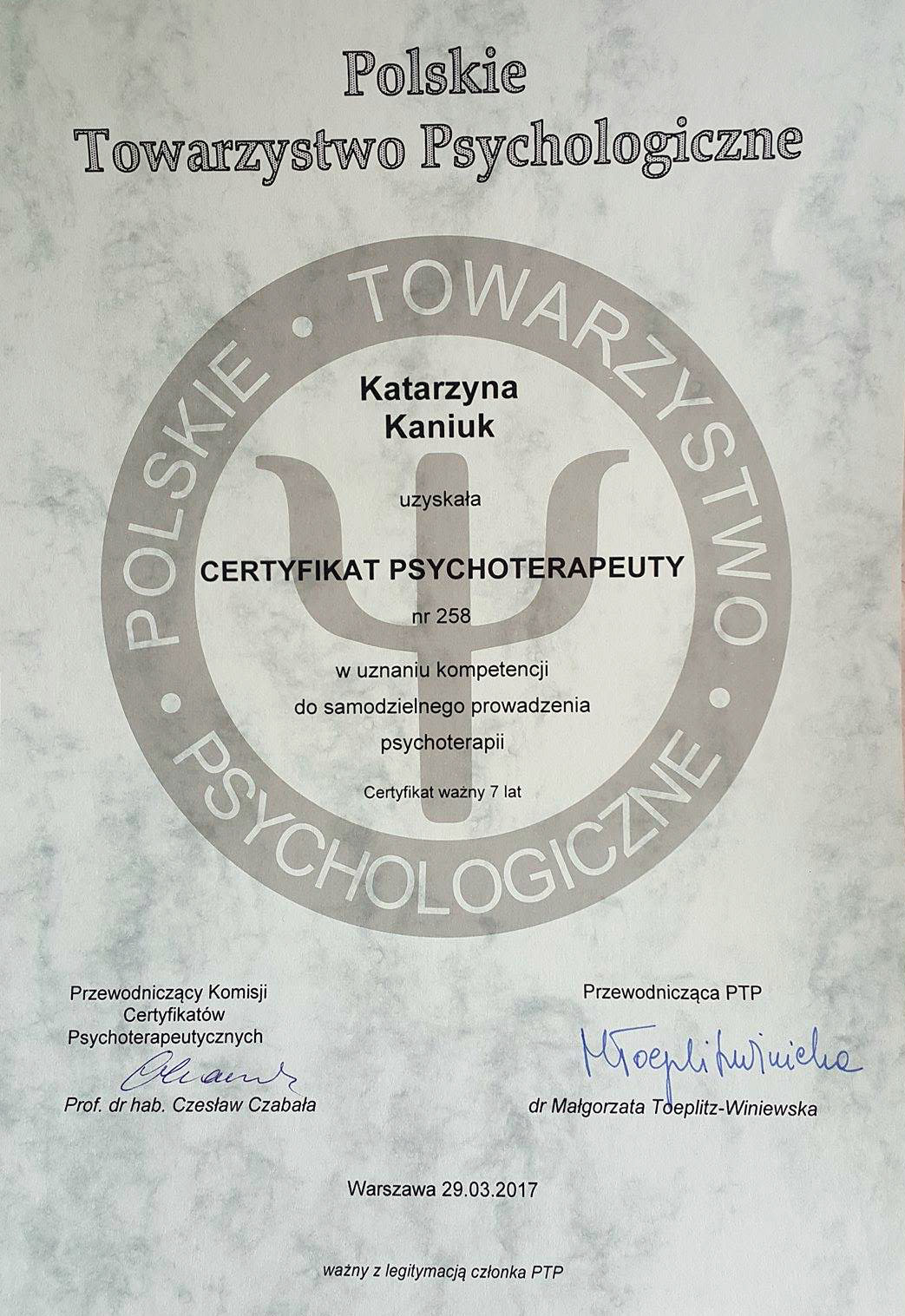 Kolejny certyfikowany psychoterapeuta w naszym Zespole